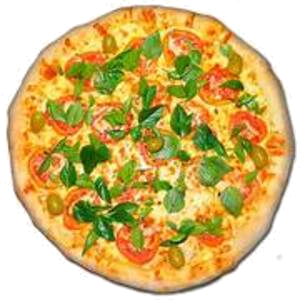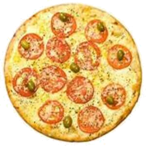 PIZZA MARGUERITA (P)Ingredientes: Mussarela, Tomate, Manjericão e Azeitona.(P) R$ 40,00