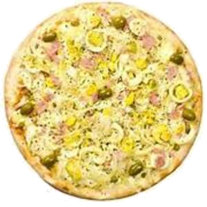 PIZZA FRANBACON (P)Ingredientes: Frango, Molho, Catupiry, Mussarela, Milho, Bacon, Oregano e Azeitona.(P) R$ 45,00