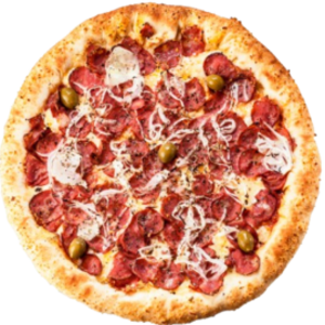 PIZZA TOSCANA (P)Ingredientes: Calabresa, Cebola, Mussarela, Oregano e Azeitona.(P) R$ 40,00