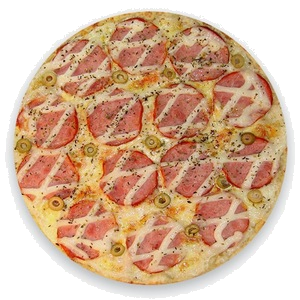 PIZZA NAPOLITANA (P)Ingredientes: Presunto, Catupiry, Mussarela, Milho, Bacon, Oregano e Azeitona.(P) R$ 45,00
