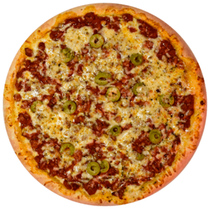 PIZZA BHAIANA (P)Ingredientes: Mussarela, Calabresa, Pimenta Calabresa e Azeitona.(P) R$ 45,00
