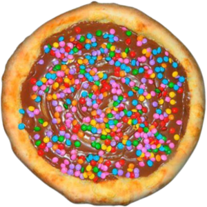 PIZZA CONFETE (P)Ingredientes: Mussarela, Chocolate ao Leite e Confete.(P) R$ 45,00