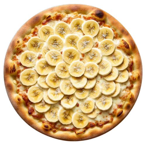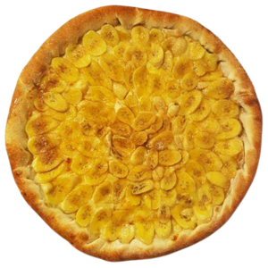 PIZZA BANANA NEVADA (P)Ingredientes: Mussarela, Banana, Chocolate Branco e Açucar.(P) R$ 45,00